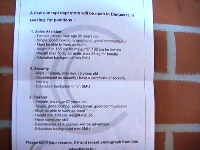 Das Foto von dieser vorbildlichen Stellenausschreibung verdanke ich T.B., ihm sei herzlich gedankt!
